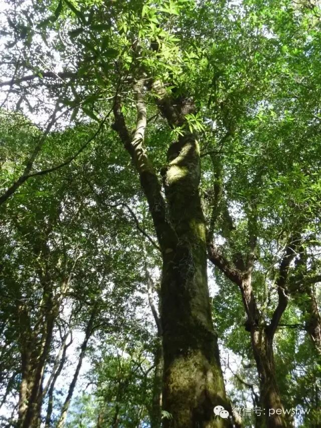 經(jīng)歷過一次又一次與千年古茶的美麗邂逅,看不盡的哀牢山美景在眼前層第更迭,帶著敬仰與虔誠,我們終于到達(dá)茶樹王所在地——海拔二千四百余米的哀牢山腹地的一個(gè)山腰。我們置身其中,峰嶺疊嶂,由藏槭樹、木果柯、古茶樹等千年古木和箭竹等灌木形成的亞熱帶原始森林的旖旎風(fēng)光在我們眼前層出不窮。